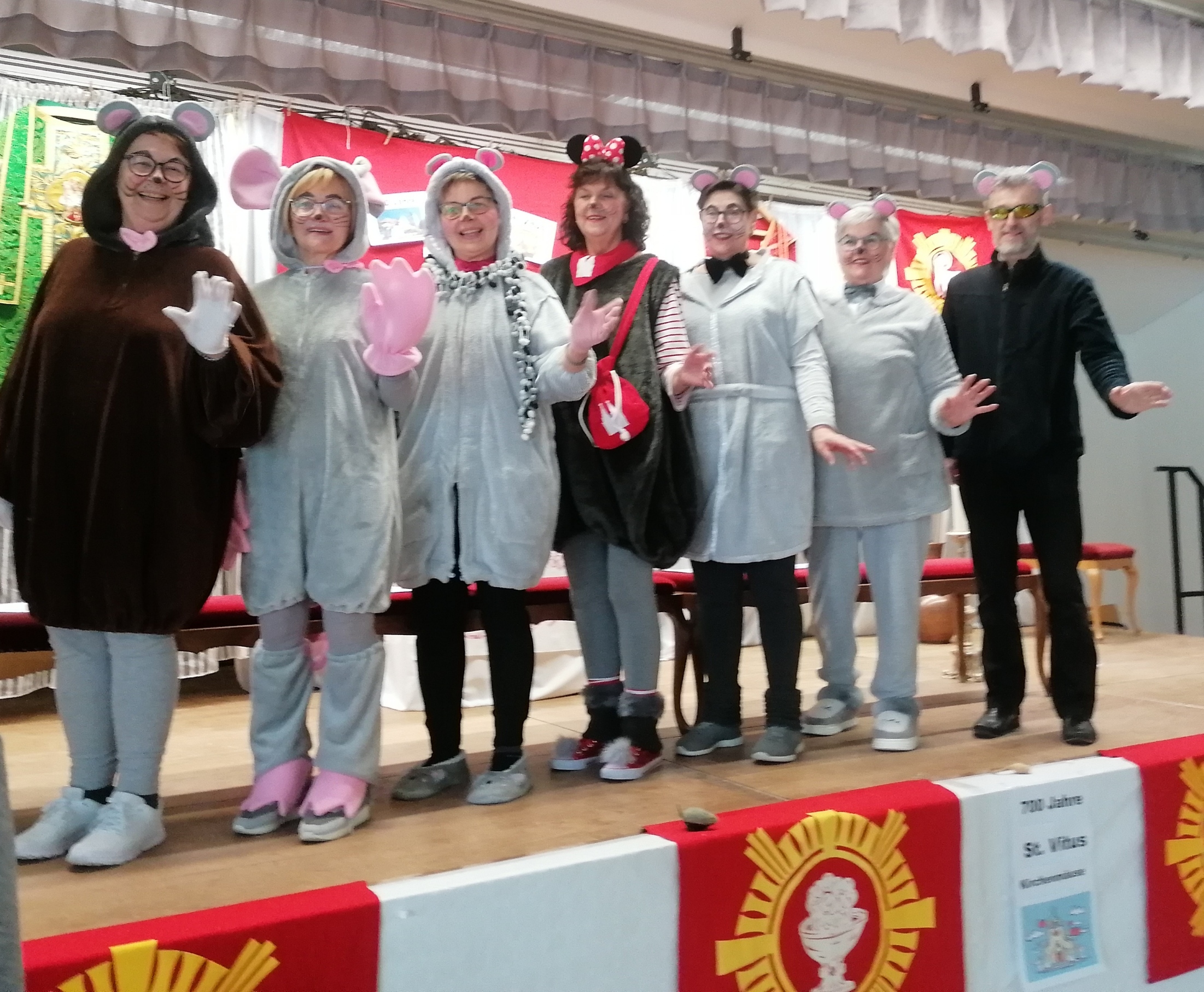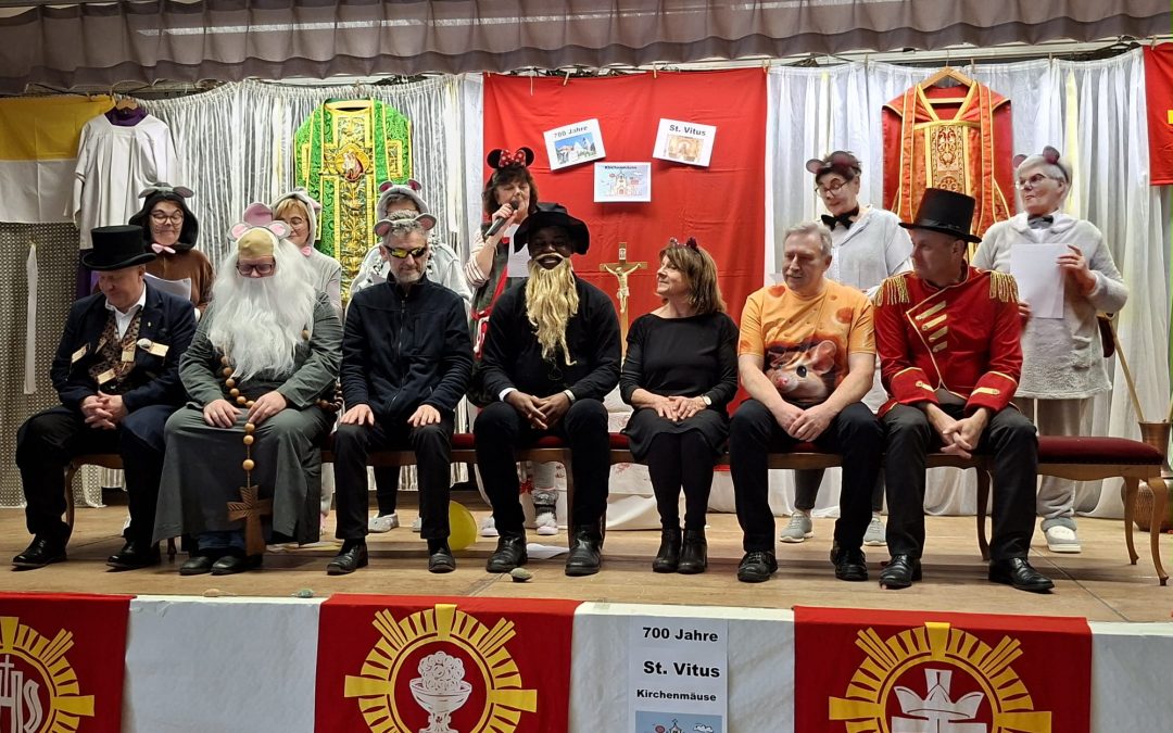 Lustige Einlagen der Vorstandschaft, wie ein selbstgedichtetes Lied über die Kirchenmäuse oder den Sketch der Kirchenmäuse. Bei dem Faschingssketch wurden besondere Promigäste auf die Schippe genommen, was große Lachsalven entlockte. Als besonderen Dank erhielten Sie einen Mausefalle-Orden – aus die Maus.