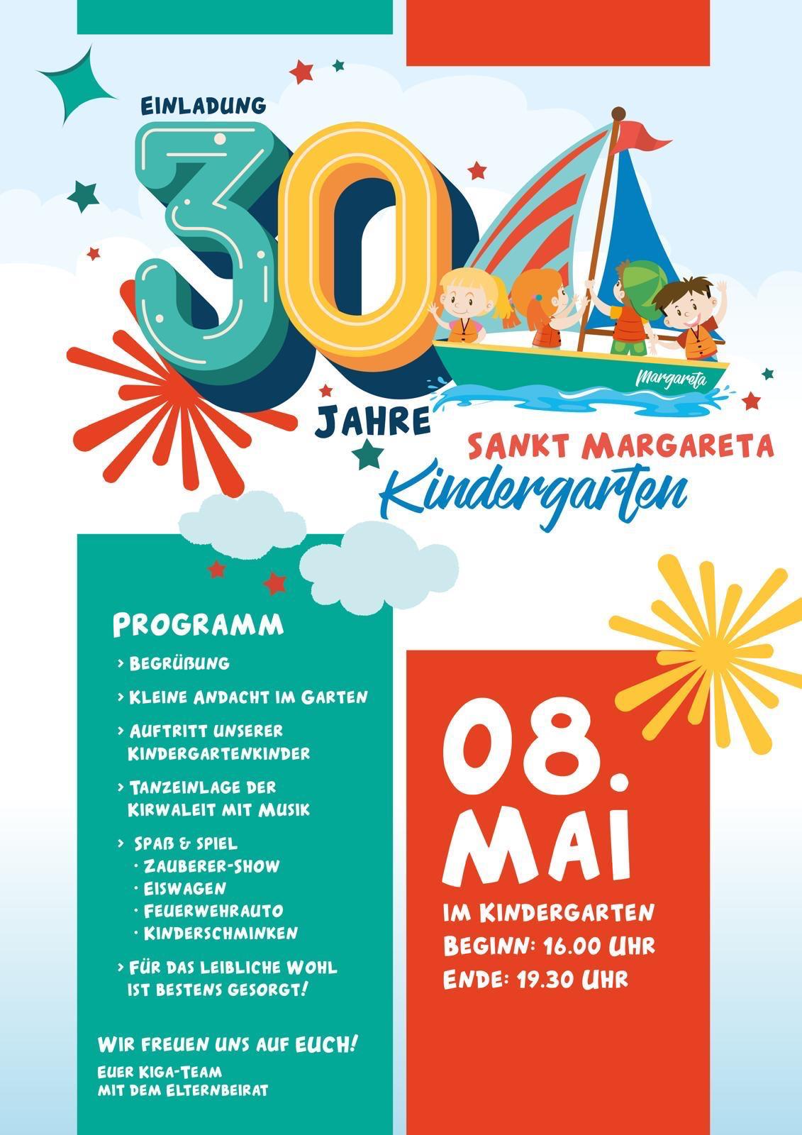 Einladung zur Feier 30 Jahre Kindergarten Sankt Margareta