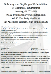 30-jähriges Weihejubiläum St. Wolfgang – Holzhammer